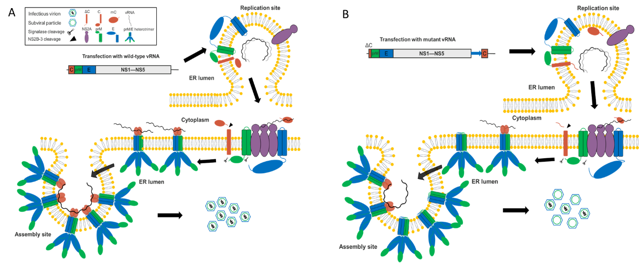 登革病毒、寨卡病毒、日本乙脑病毒等,在世界范围多次引起公共卫生安全事件或威胁的人畜共感染的蚊媒病毒都属于黄病毒。由于没有特效抗病毒治疗药物,疫苗免疫仍是预防这类病毒性传染病的必须手段。早前,黄热病毒YF17D及乙型脑炎病毒SA-14-14-2弱毒疫苗的成功研发和应用,证明了减毒活疫苗是预防黄病毒感染的理想的疫苗开发重要途径。但是,减毒活疫苗的经典开发方法是通过连续盲传以获得无预期的自发突变,最终达到减毒的效果。由于其遗传背景不清晰,所以疫苗的工作原理和保护范围不明确,这就容易导致无法有效应对由特定黄病毒引起的突发的公共卫生事件。为了解决这个科学和应用问题,陈舜团队提出并探讨了人为定向地改变黄病毒结构蛋白的时序切割而致弱病毒的新策略。