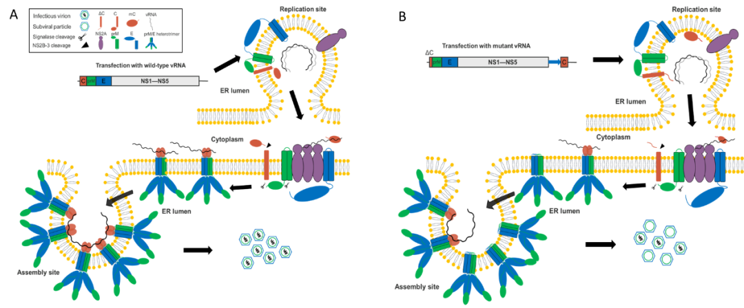 登革病毒、寨卡病毒、日本乙脑病毒等,在世界范围多次引起公共卫生安全事件或威胁的人畜共感染的蚊媒病毒都属于黄病毒。由于没有特效抗病毒治疗药物,疫苗免疫仍是预防这类病毒性传染病的必须手段。早前,黄热病毒YF17D及乙型脑炎病毒SA-14-14-2弱毒疫苗的成功研发和应用,证明了减毒活疫苗是预防黄病毒感染的理想的疫苗开发重要途径。但是,减毒活疫苗的经典开发方法是通过连续盲传以获得无预期的自发突变,最终达到减毒的效果。由于其遗传背景不清晰,所以疫苗的工作原理和保护范围不明确,这就容易导致无法有效应对由特定黄病毒引起的突发的公共卫生事件。为了解决这个科学和应用问题,陈舜团队提出并探讨了人为定向地改变黄病毒结构蛋白的时序切割而致弱病毒的新策略。