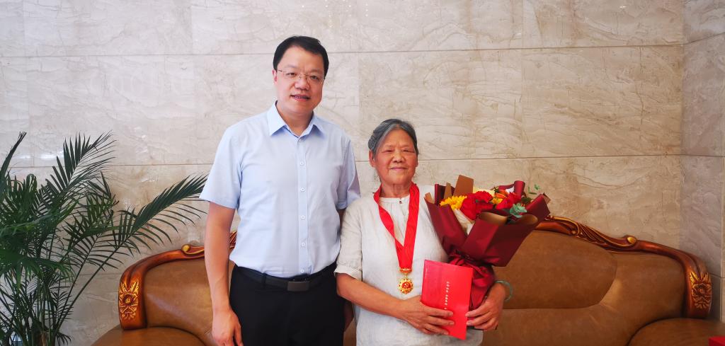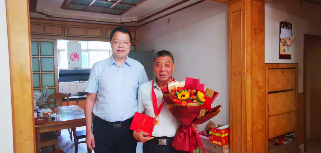 7月8日,学院党委书记廖鹏、党委办公室主任张廷宇一行赴雅安校区看望慰问2022年学院新增“光荣在党50年”老教师刘长松、汪明月同志,现场向他们颁发中共中央统一制作的“光荣在党50年”纪念章,并代表学校党委送上慰问金和鲜花。
