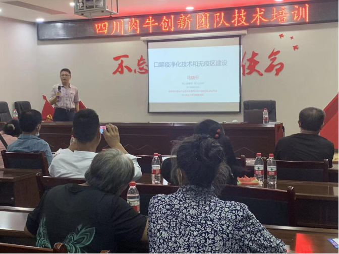 7月7日至8日,国家肉牛牦牛产业技术体系常见病研究与诊疗岗位科学家团队成员、四川省肉牛创新团队肉牛主要疾病防控技术研究与集成岗位专家马晓平副教授,应邀前往四川省宜宾市兴文县开展口蹄疫净化技术和无疫区建设等肉牛疾病防控技术培训。