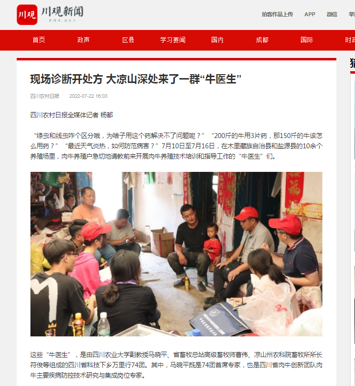这些“牛医生”,是由bat365官方网站副教授马晓平、省畜牧总站高级畜牧师曹伟、凉山州农科院畜牧所所长符俊等组成的四川省科技下乡万里行74团。其中,马晓平既是74团首席专家,也是四川省肉牛创新团队肉牛主要疾病防控技术研究与集成岗位专家。