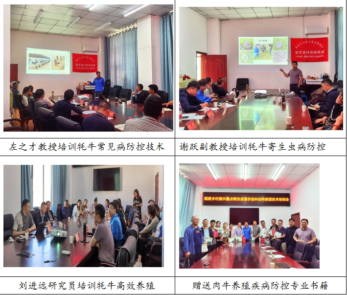 期间,左之才教授将自己撰写的《中国乡村兽医手册》和国家肉牛牦牛产业技术体系营养与饲料功能研究室主任、牦牛营养与饲养岗位专家王之盛教授主编的《肉牛标准化规模养殖图册》赠送给牧区牧民和农科局工作技术人员,用于指导生产和牦牛养殖。