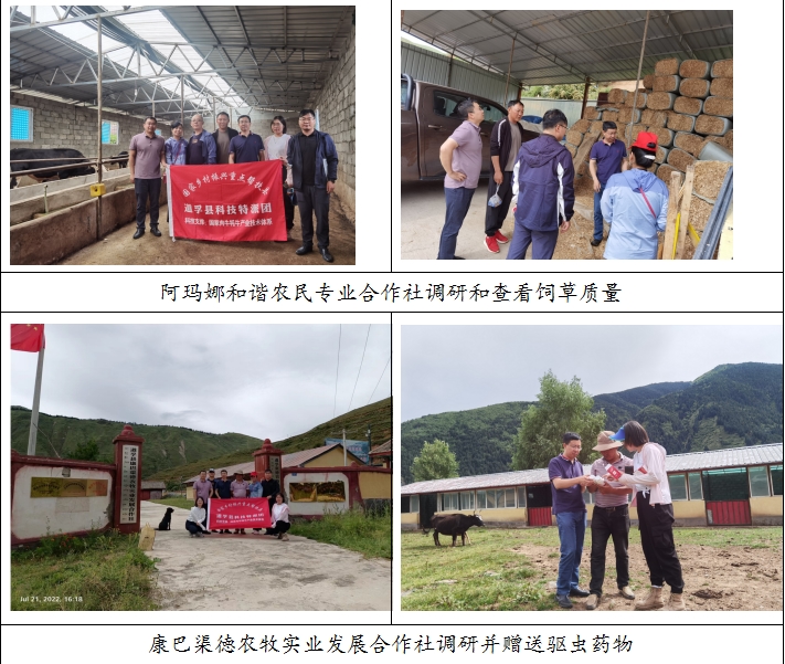 7月21日下午,左之才教授团队与道孚县疫控中心主任李德珍、副主任李泌的一行前往鲜水镇前进一村道孚阿玛娜和谐农民专业合作社和瓦日康巴渠徳农牧实业发展合作社实地调研该农场在养殖过程中存在的各种问题,包括饲草种植、养殖环境、草料质量、疾病防控等情况,并赠送了驱虫药。