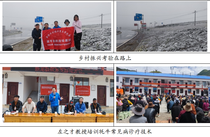 7月17日-24日,为深入落实党中央对巩固拓展脱贫攻坚成果同乡村振兴有效衔接的重要部署,贯彻《中共中央、国务院关于做好2022年全面推进乡村振兴重点工作的意见》等文件精神,持续推进产业振兴助推乡村振兴高质量发展,国家肉牛牦牛产业技术体系常见病研究与诊疗岗位专家左之才教授带领团队成员谢跃副教授、郭红瑞博士等一行5人赴四川省道孚县、新龙县开展牦牛产业新技术培训及现场服务。