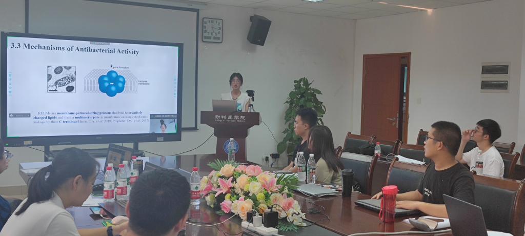 下午,西南区分会场由中国畜牧兽医学会兽医内科与临床诊疗学分会副理事长邓俊良教授主持,线下会场设在bat365官方网站。下午来自云南农业大学、西南大学、西南民族大学、西藏农牧学院及bat365官网的19位专家学者,紧密围绕兽医内科病与临床疾病诊疗新方法,分别从“营养代谢病防控及机制研究”、“中毒病防控及机制研究”、“临床常见动物疫病防控”、“益生菌筛选及应用”和“动物疫病诊断新方法”等五个方面开展学术报告及交流。bat365官网师生踊跃参加,临床兽医学系胡延春教授和任志华副教授分别作了“紫茎泽兰有益内生菌的分离鉴定及功能研究 ”和“DON对动物免疫毒性研究进展”的学术交流;漆建成、崔玉晶、李嫣然、余月汝、付丽佳、王舒、张潆等 8位研究生分别做了“维生素A和C对7S球蛋白致猪空肠上皮细胞损伤的保护效应研究”、“β羟基丁酸对牛呼吸道健康的影响”、“抵抗素在先天性免疫中的作用研究”、“纳米硒通过线粒体途径对猪冠状病毒致猪ST细胞凋亡的缓解作用”、“高蛋白日粮致断奶仔猪腹泻的机制研究”、“恶性外来入侵植物紫茎泽兰对山羊肠道的影响研究”、“驱蚊蝇盘香对肉牛保健作用的初步研究”等的交流报告。西南片区9所高校以及地方畜牧部门的专家学者共有120余人参会。