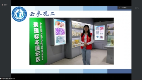 “气管插管维持手术过程中动物呼吸与麻醉状态,同时用心电监护仪监测动物生命体征,此外手术无影灯能让手术部位更加清晰。”主讲人袁雨详细地向同学们介绍手术室的各种器材。在参观完动物医院后镜头来到标本馆,这里不仅有大熊猫的骨骼标本、被誉为“东方宝石”的朱鹮剥制标本、动物系统浸制标本、还有各种动物的病理标本。