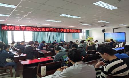 第一场由学院副院长陈舜为大家进行研究生管理制度专题教育和学科发展历史(前景)专题报告。陈院长从兽医学科萌芽、学科建立和学科发展等方面对学科的发展史进行介绍,同时结合学院实际,从兽医学科平台、导师队伍、研究生培养和就业、学科现状和前景等方面进行展望,增进研究生了解兽医学科,认知科学,并鼓励研究生立志科学事业。她还结合今年新修订的研究生管理办法,通过图文并茂的PPT展示,向研究生介绍了学校人才培养总体目标、研究生培养的基本要求,并重点讲解研究生培养过程中的学习计划制订、重要环节的开展和考核以及毕业答辩和学位授予的相关规定。