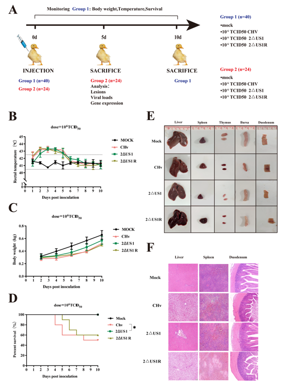 图1. US1基因影响鸭瘟病毒的体内致病性