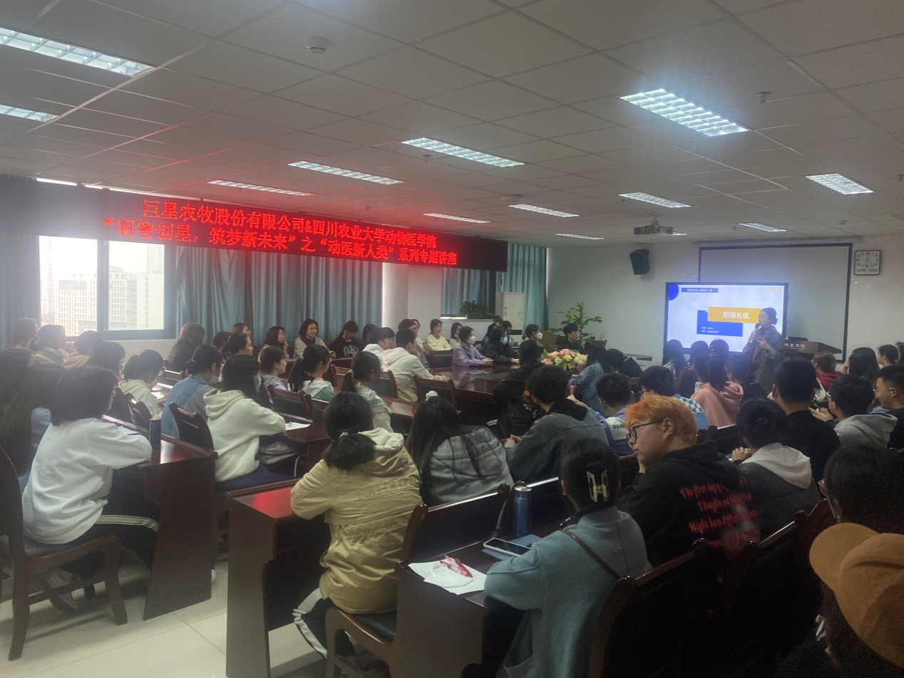 为进一步加强学生就业指导针对性,打破在校学生对职场的恐惧心理和固有观念,加强学生对企业、职业的了解。3月7日,bat365官方网站与巨星农牧有限公司联合创办的“明智创新,筑梦新未来”系列活动第二期“动医新人类——职场初探索”系列专题讲座在7-1109会议室如期开展。活动邀请到巨星农牧有限公司猪业HRBP的刘佳佳女士担任讲师,为同学们提供职场礼仪方面的就业指导,百余名动医学子参与了此次就业指导讲座。