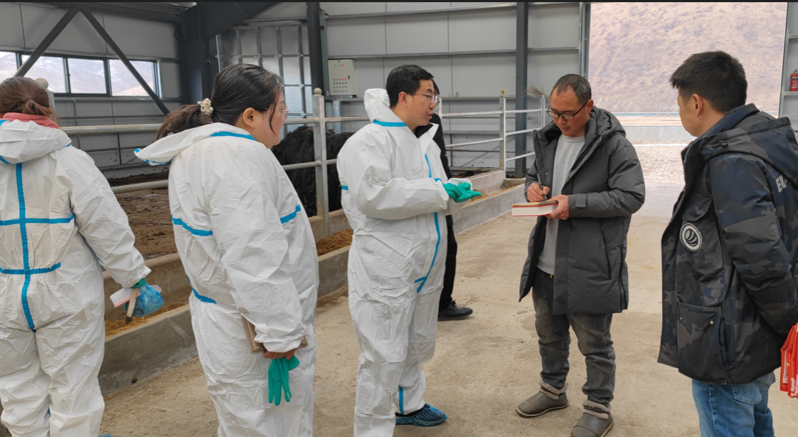 专家团队一行赶往色达县开展帮扶活动。在海拔4000多米的色达县,在色达县委农办李柏润、农业农村与科技局李小飞、王兴霞的陪同下,部分党员教师冒着严重的高原反应,未作休整停顿,先后到牛满园养殖有限责任公司、牛多多养殖有限责任公司、色达云端牧业有限公司牧场等地,针对冬季育肥牦牛中遇到的各种问题进行“问诊把脉”。