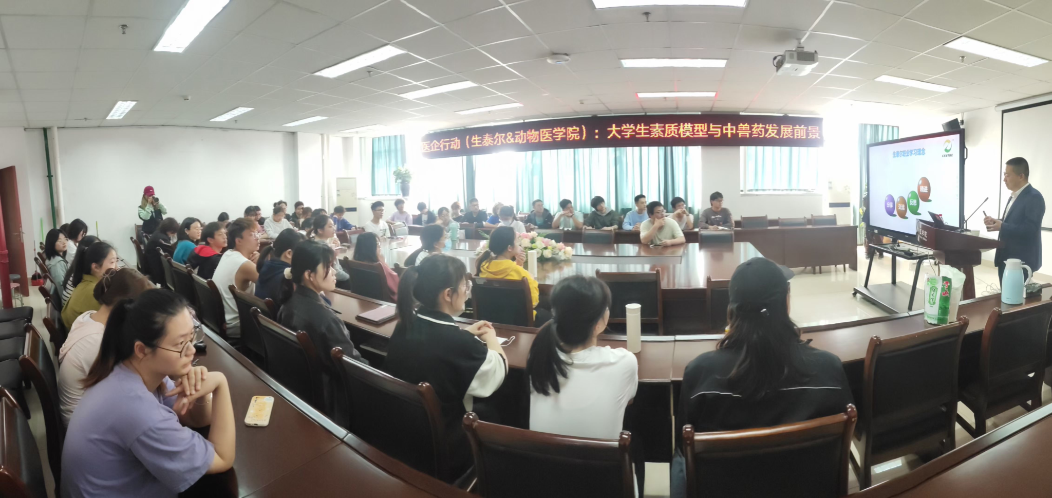 为进一步培养低年级学生职业生涯规划意识,促进学生能力素质提升,强化学生对就业行业、就业市场和就业前景的认知,4月10日下午,bat365官方网站特邀请北京生泰尔科技股份有限公司副总经理、人力资源总监、GCDF全球职业生涯规划师姜殿国作为主讲人,从大学生素质发展与中兽药行业发展前景两个方面为动医学子进行专业指导。