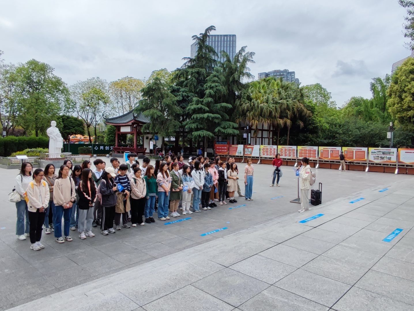 下午两点,实践团队到达文化公园。在十二桥烈士墓广场上,党团联建与宣传部工作人员李钏向大家介绍了十二桥烈士陵园的历史背景和安眠与此的烈士们的重要事迹,发展对象们了解到了国民党军统特务烧毁国民党四川省特种委员会全部档案以及将关押在省特委看守所内的32名政治犯运至外西十二桥集体屠杀的可怕罪行和烈士们坚贞不屈的革命精神。