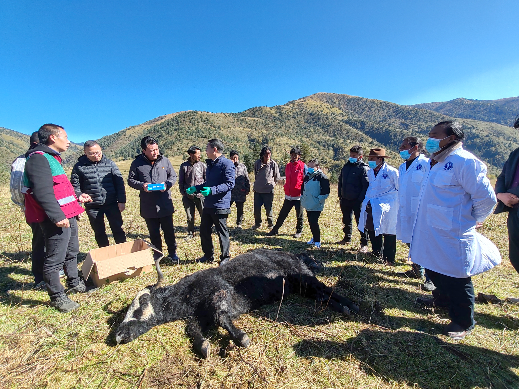 图2专家组在甘孜州进行牦牛饲养管理与疫病防控技术现场指导