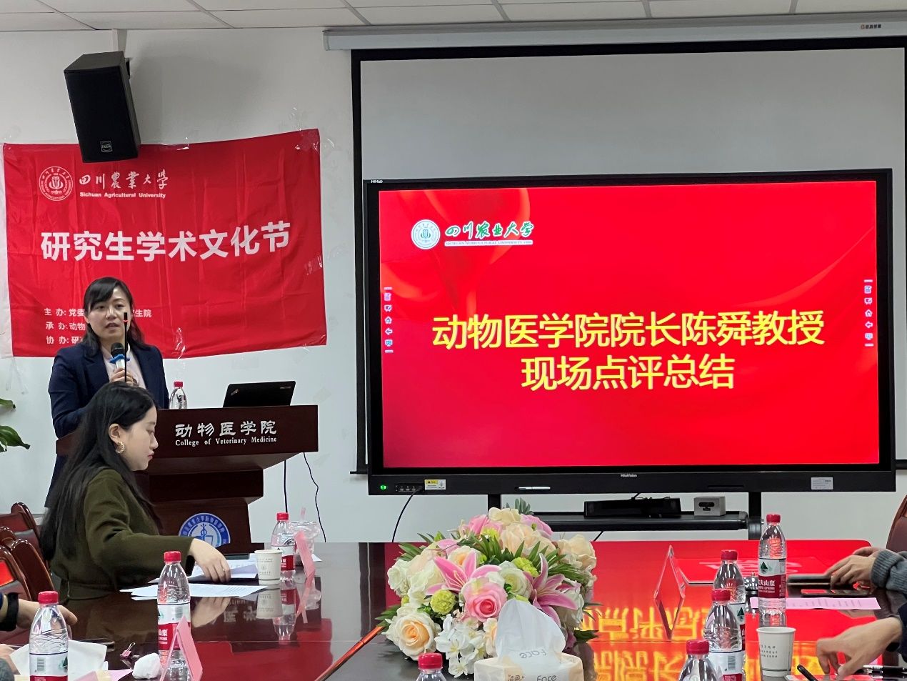 会议由周迅博士主持,首先由党委副书记宋三多老师介绍了本次活动的筹备与组织情况。本次会议,来自不同年级、不同研究方向的12名研究生做学术交流汇报,汇报严谨专业,并充满对科学的热情。通过提问、评分环节,根据汇报者学术成果和现场表现,评选出本年度 “博士研究生学术之星”、“学术型硕士学术之星”、“兽医硕士学术之星”依次为杨志双、谈瀚太、徐麟华三名同学。最后,通过大众评委现场票选出三位“学术之星提名奖”为严巧华、陈汭、王小利同学,剩下六位获得“学术之星入围奖”。