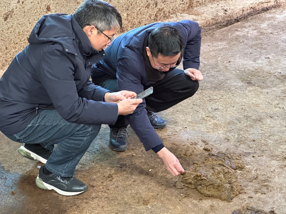 肉牛疫病防控专家正在研讨肉牛粪便中的肠粘膜及未消化的食物