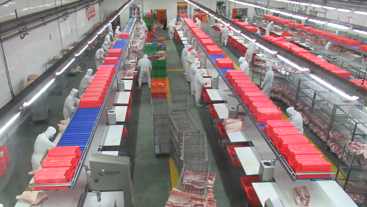 在金忠食品副总经理刘力、行政主管李星、原料采购部经理程千等相关企业负责人的带领下,我专业师生走进生猪产品屠宰加工生产一线,分别参观学习了进厂检查登记、监督查验、屠宰加工和同步检验检疫过程。