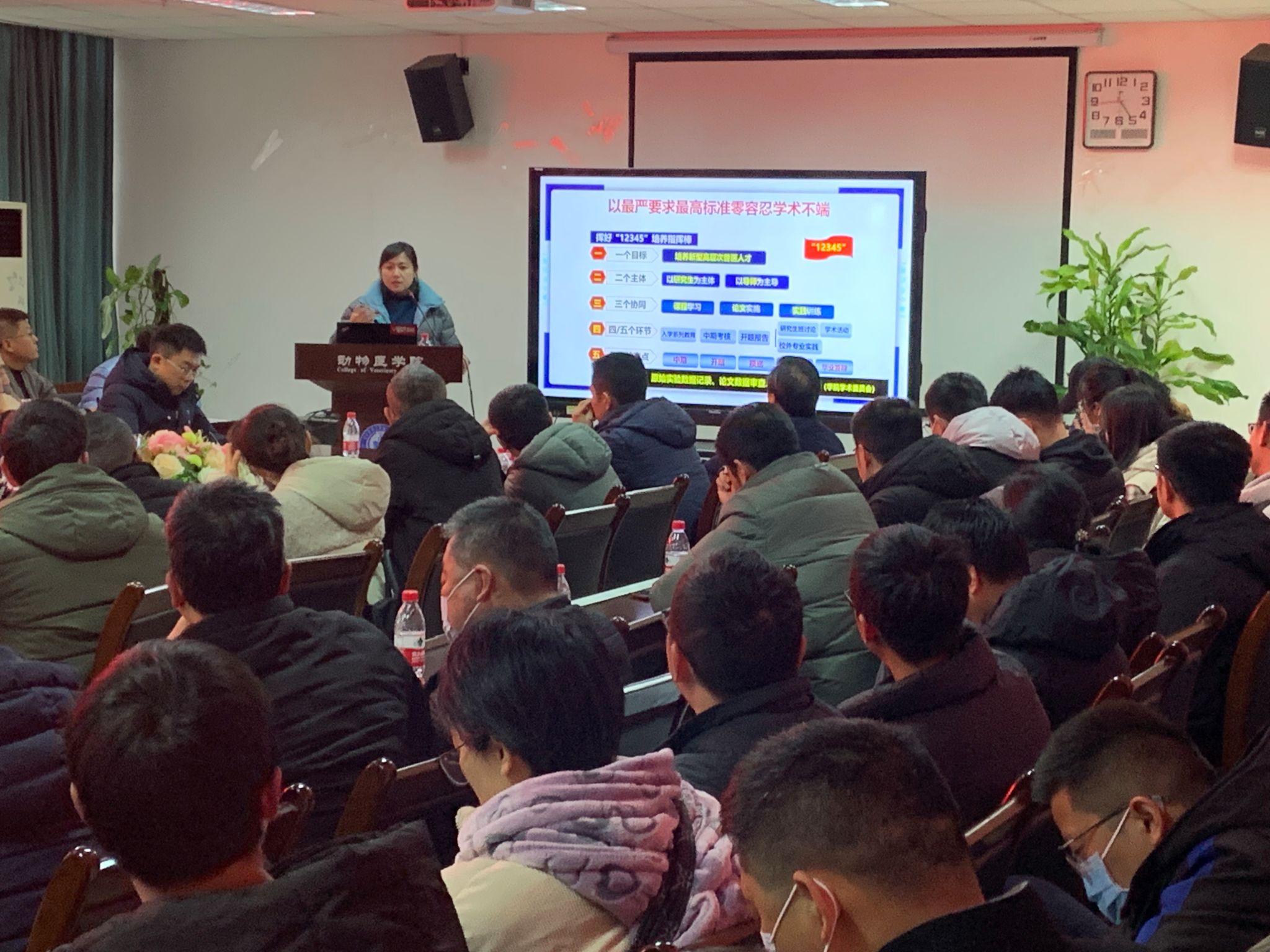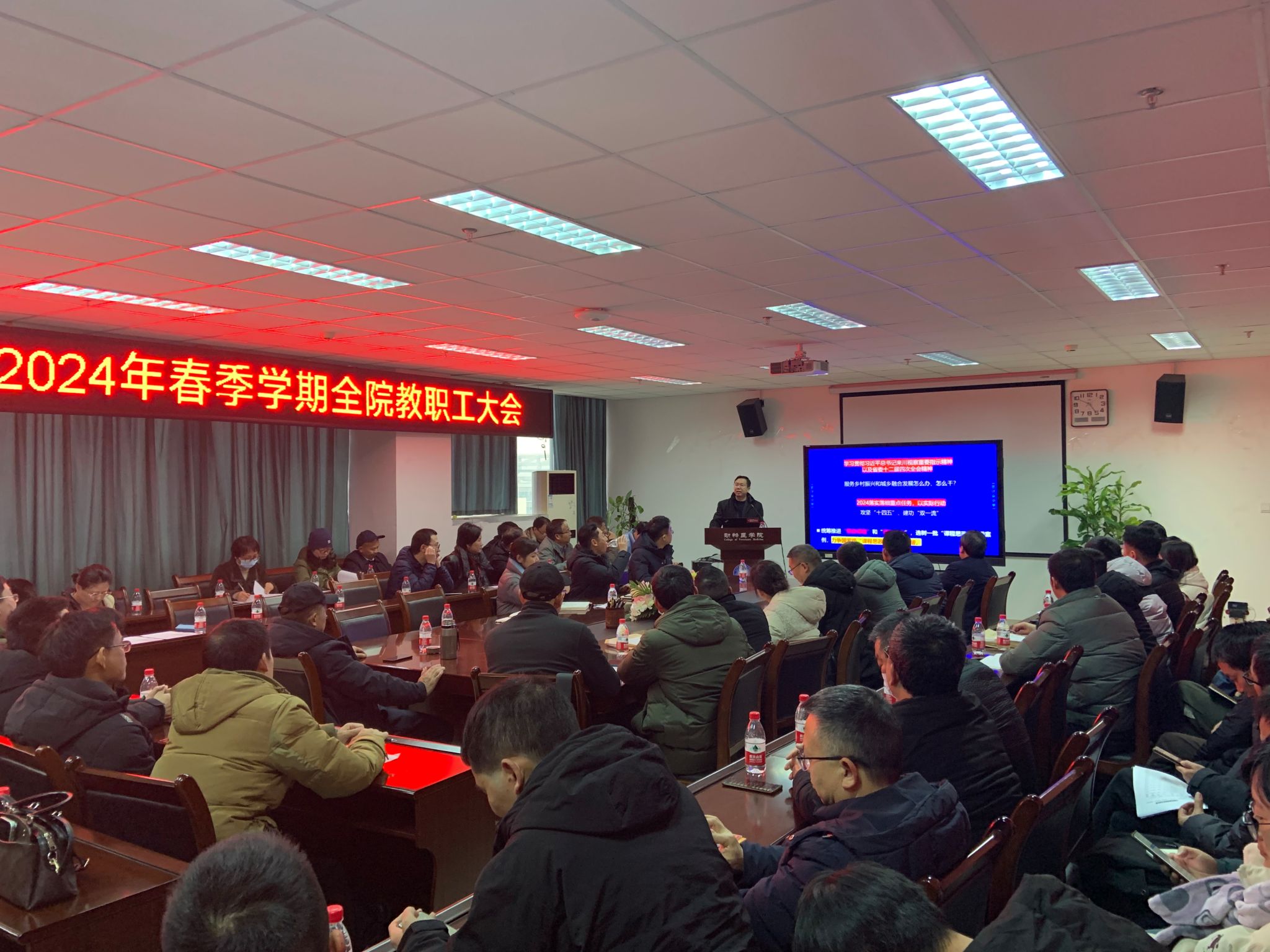 左之才就本科教学、教学动物医院、科研教学实习基地建设、本科教学实验室建设、国有资产管理、安全保卫以及社会服务工作等方面进行阐述。他特别强调要切实做好本科教育教学审核评估工作,注重提升课程教学质量,并高度重视本科毕业生的论文质量问题。此外,他还对教学动物医院的药物采购、管理等工作提出了具体要求,以确保医院运营的规范性和安全性。