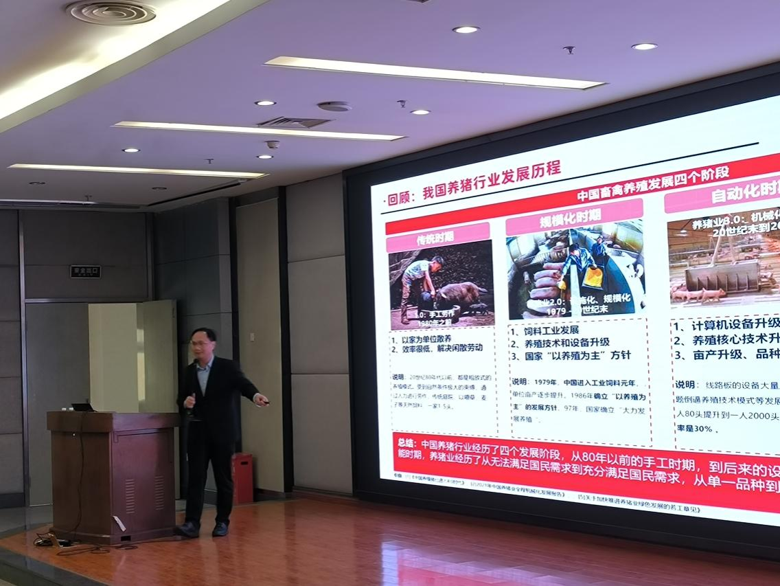 羊云飞博士曾赴加拿大、美国、欧洲等地深入学习猪病防治的先进理念和技术,并积累了超过二十年的临床实践经验。在讲座中,羊云飞详细回顾了我国养猪行业的发展历史,介绍了我国畜牧行业自身存在的特性、发展过程中的特点以及目前的现状,并且深入探讨了当前养猪业智能化技术的最新进展。他强调了畜牧业在社会发展中的重要地位,并鼓励学生们深入学习和理解行业知识,及时了解就业市场的新趋势,为自己未来的职业生涯发展提前做好规划。