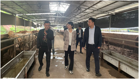 近日,四川肉牛创新团队肉牛主要疾病防控技术研究与集成应用岗位专家成员、四川省科技下乡万里行肉牛产业75团专家成员、bat365官方网站副教授王娅,bat365官方网站农发院副院长胡剑锋、bat365官方网站园艺学院廖玲一行随富顺县组织部副部长黄声剑、富顺县农业农村局长邱明贵、富顺县童寺镇书记曾平等一行的陪同下前往自贡市富顺县童寺镇东禅村九组四川腾牛农业科技有限公司肉牛养殖基地开展技术服务指导工作。