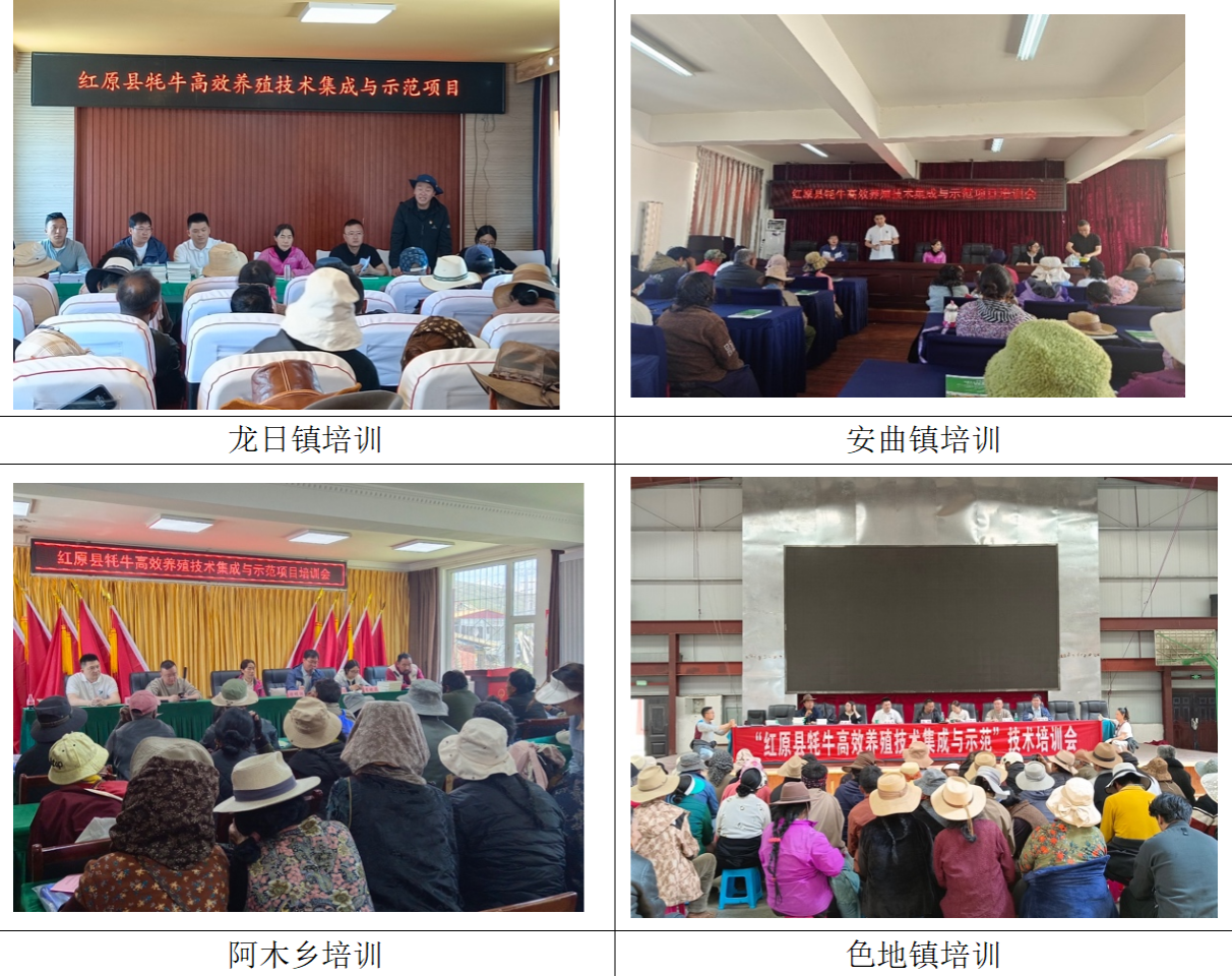 在龙日镇、安曲镇、阿木乡和色地镇,专家们进行了卧圈种草技术和牦牛高效健康养殖技术的培训。期间,共发放了2吨牧草种子,以及300余册关于牧草科学种植、牦牛健康养殖和牦牛疾病防治的技术手册。参与培训的养殖户达到300余人。