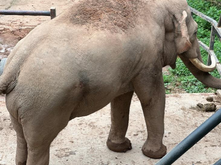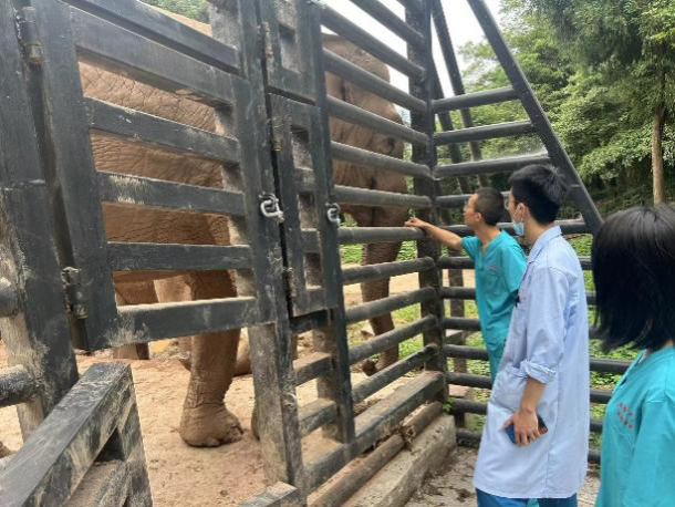 碧峰峡野生动物园饲养的一头雄性亚洲象(呼名:莫果,现年约24岁),今年3月起,出现行走困难,两前肢腕、肘、肩三个关节呈现不同程度的僵直状态(图1)。