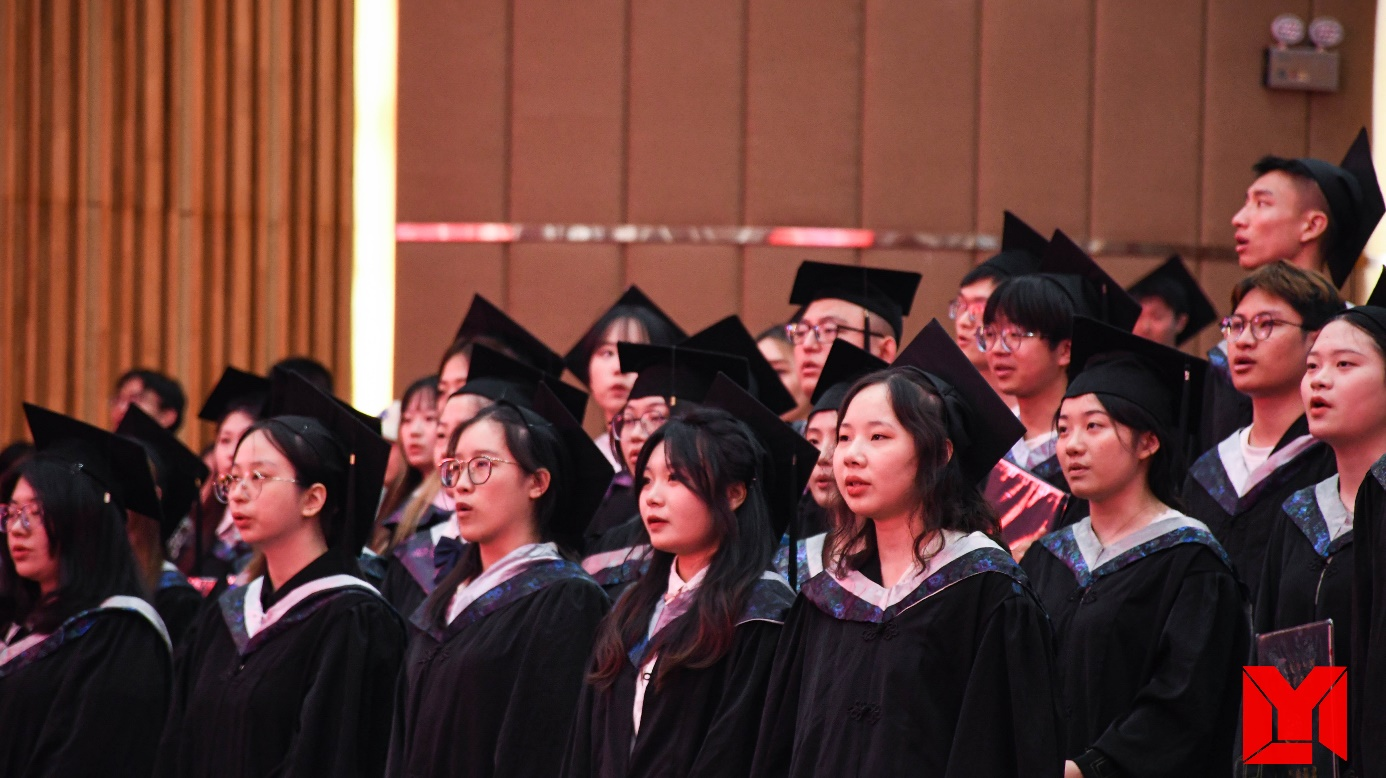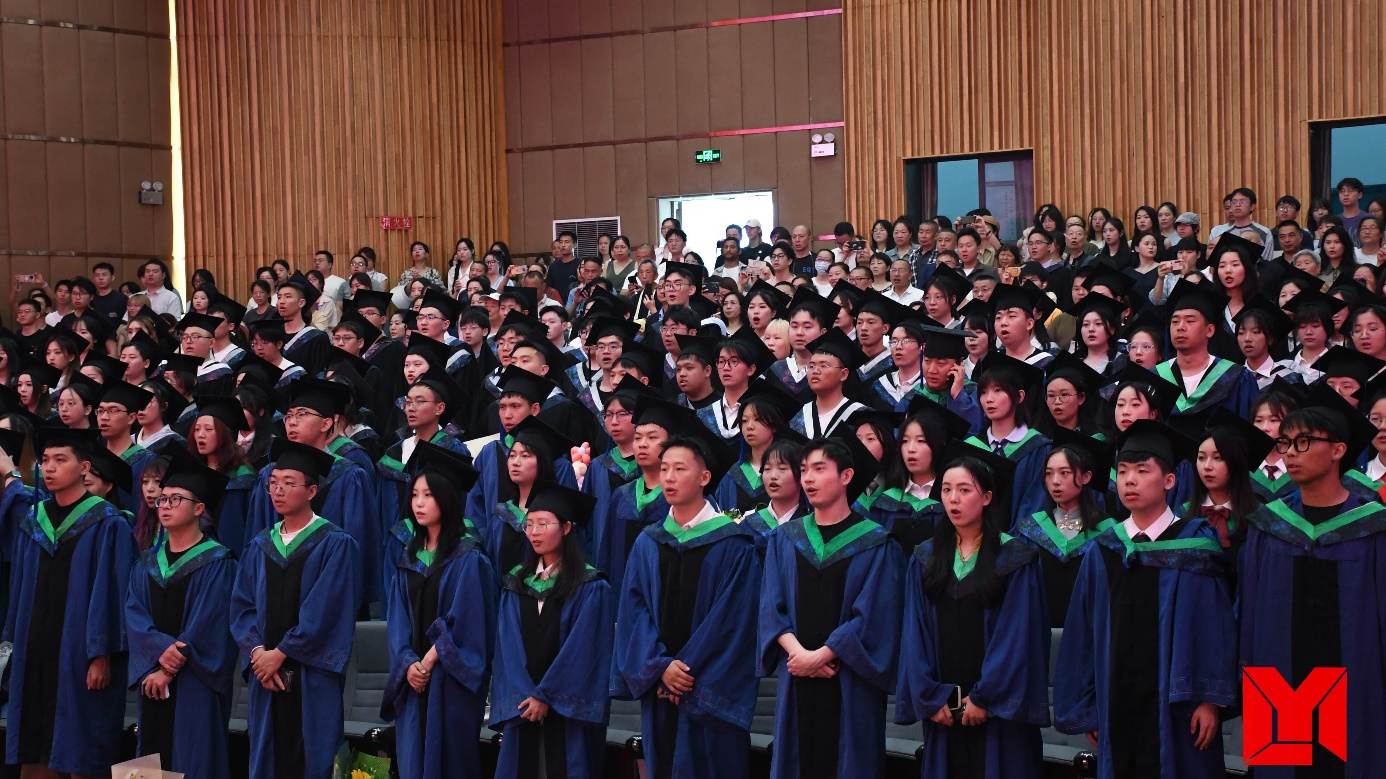 现场全体人员齐声高唱国歌后,2024届学生毕业典礼正式拉开帷幕。本次典礼由贾仁勇书记主持。