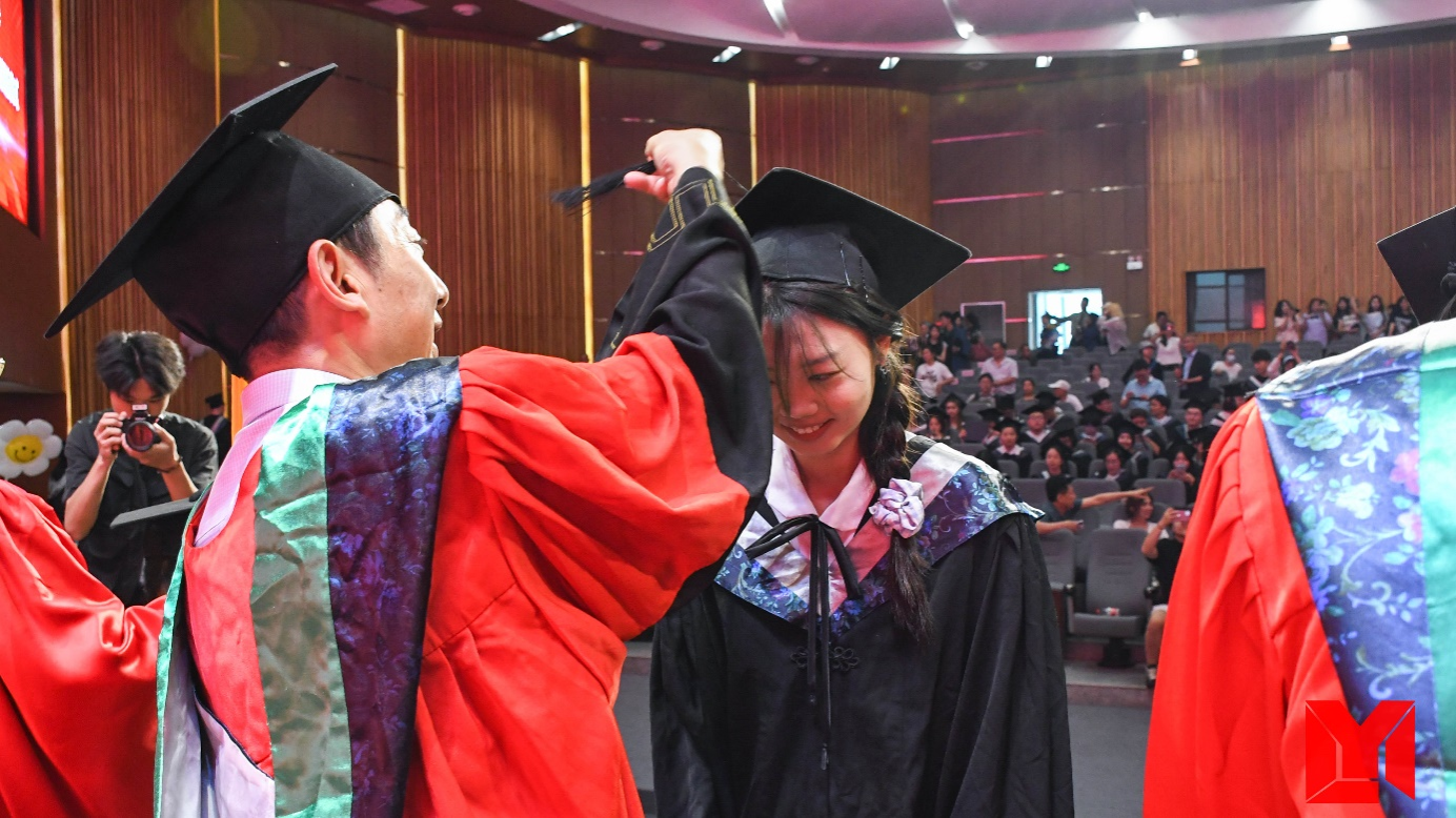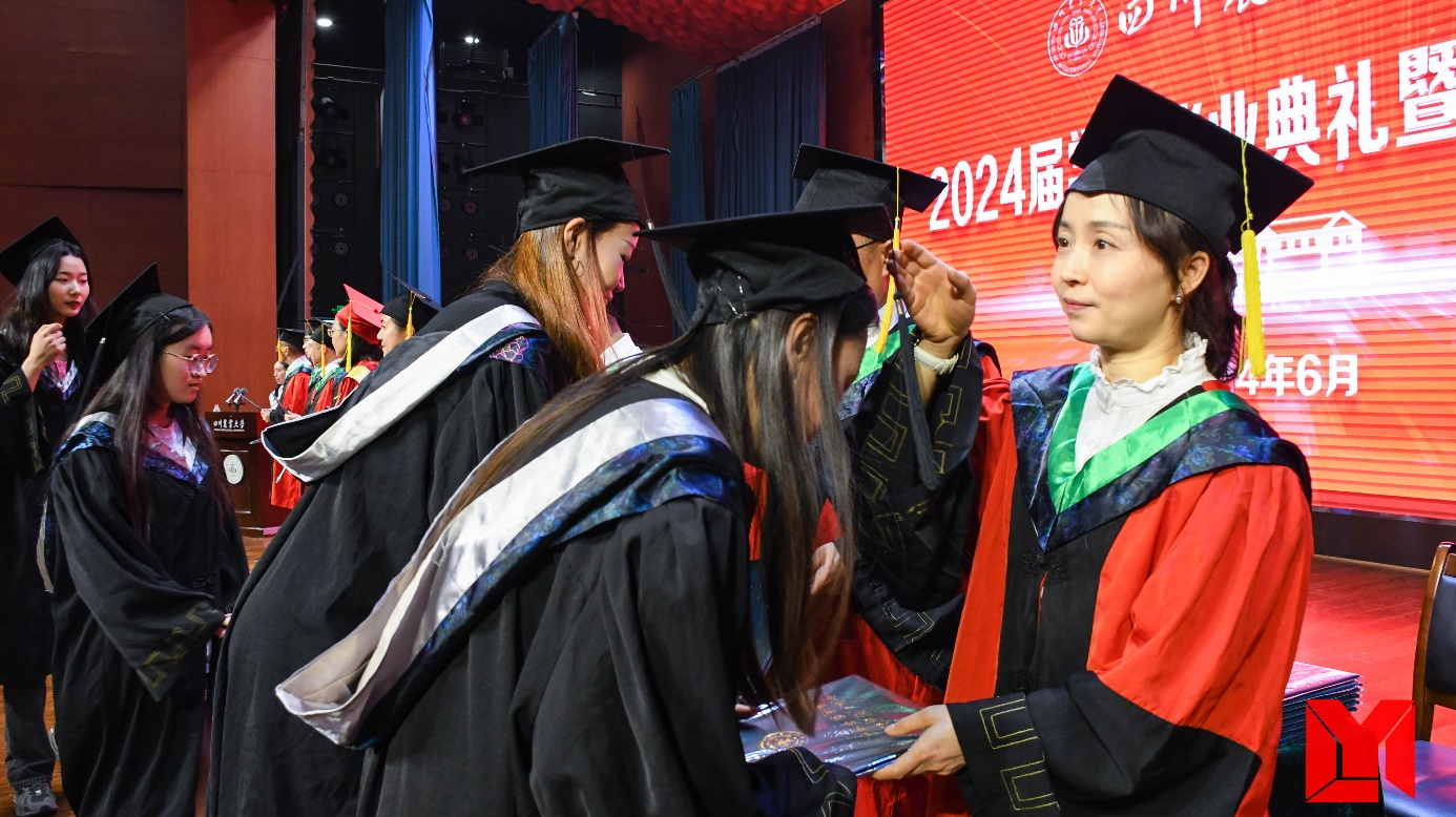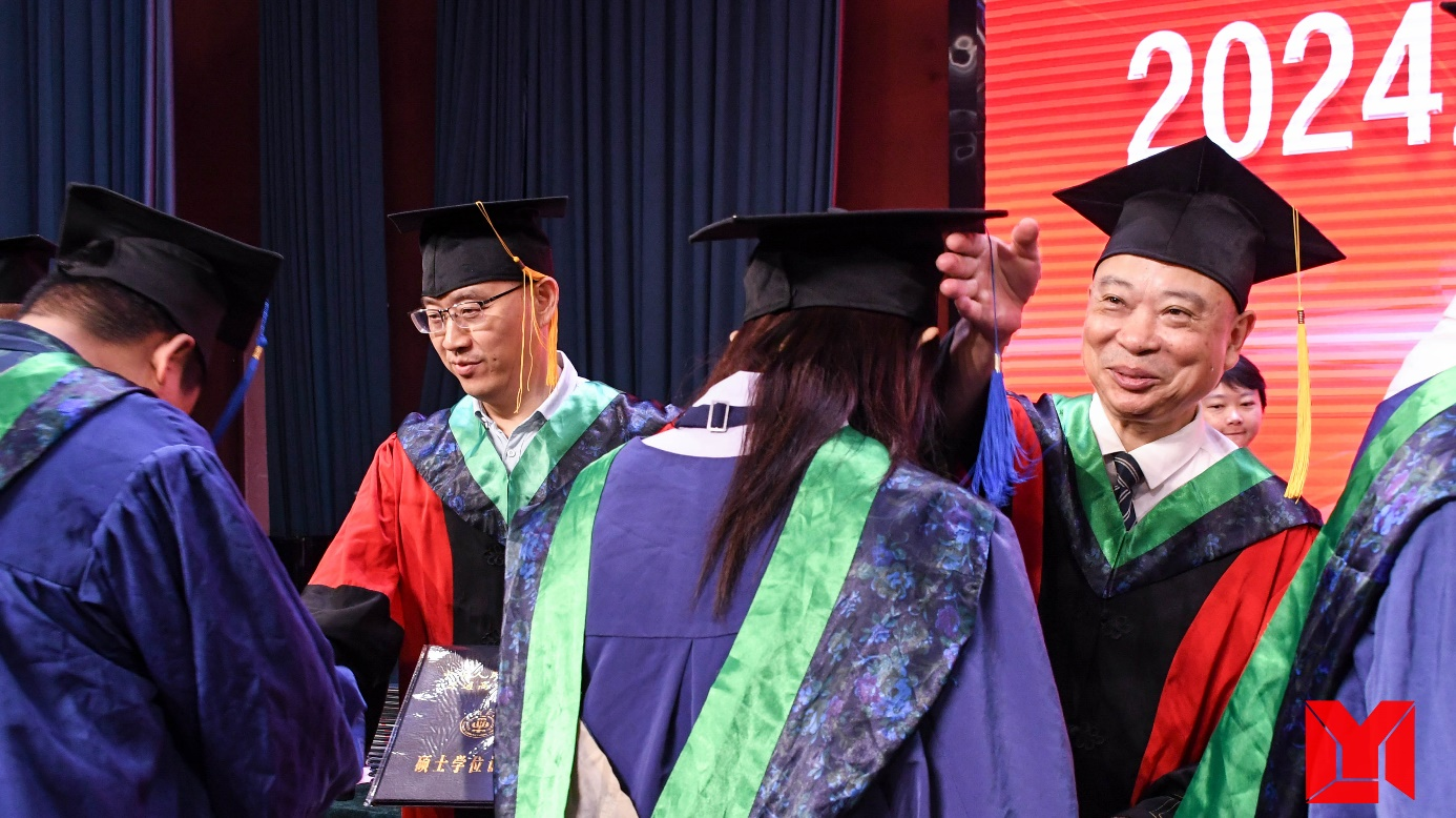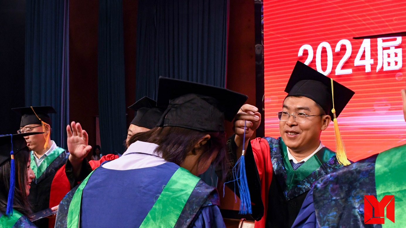 发言环节结束后,现场工作人员宣读了2024届研究生、本科生授位学生名单,由主席台就座领导为毕业生们拨穗授位。在热烈的掌声中,毕业生们分组上台接受授位,领导们为每一位毕业生拨穗、授予学位证书。最终,在欢快热烈的《歌唱祖国》歌声中本次典礼画上了圆满的句号。