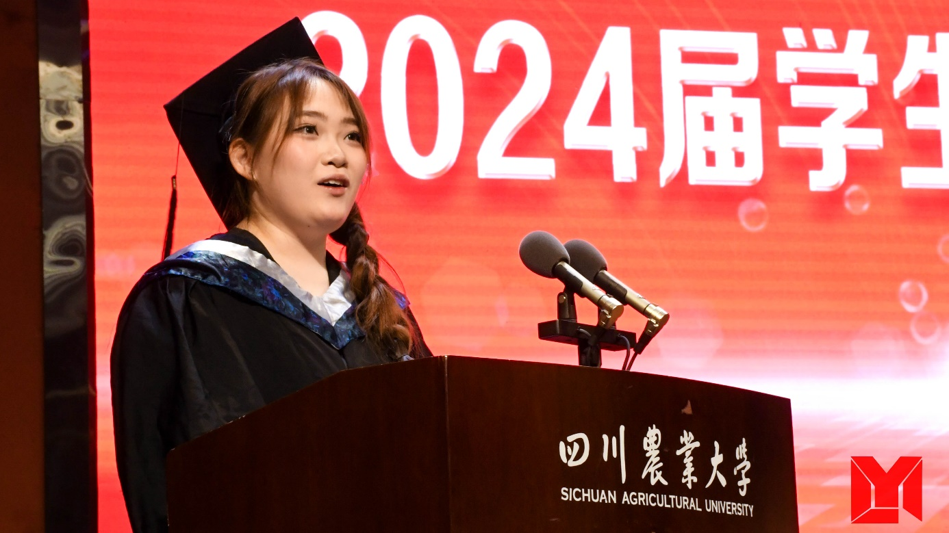 风劲好扬帆,奋进正当时。虽然毕业生们与川农动医的故事即将画上句点,但他们人生的“全新篇章”正在徐徐展开。毕业研究生代表袁雨在发言中讲到:“属于我们的青春还没有结束。”本科毕业生代表胡家萌也在发言中表达了对往昔川农大生活的怀念以及对每位毕业生都能前程似锦的祝福。