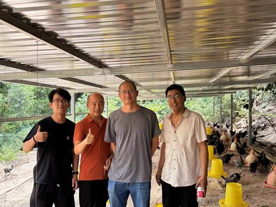 (图为舒刚副教授指导家庭农场芦花鸡养殖工作)