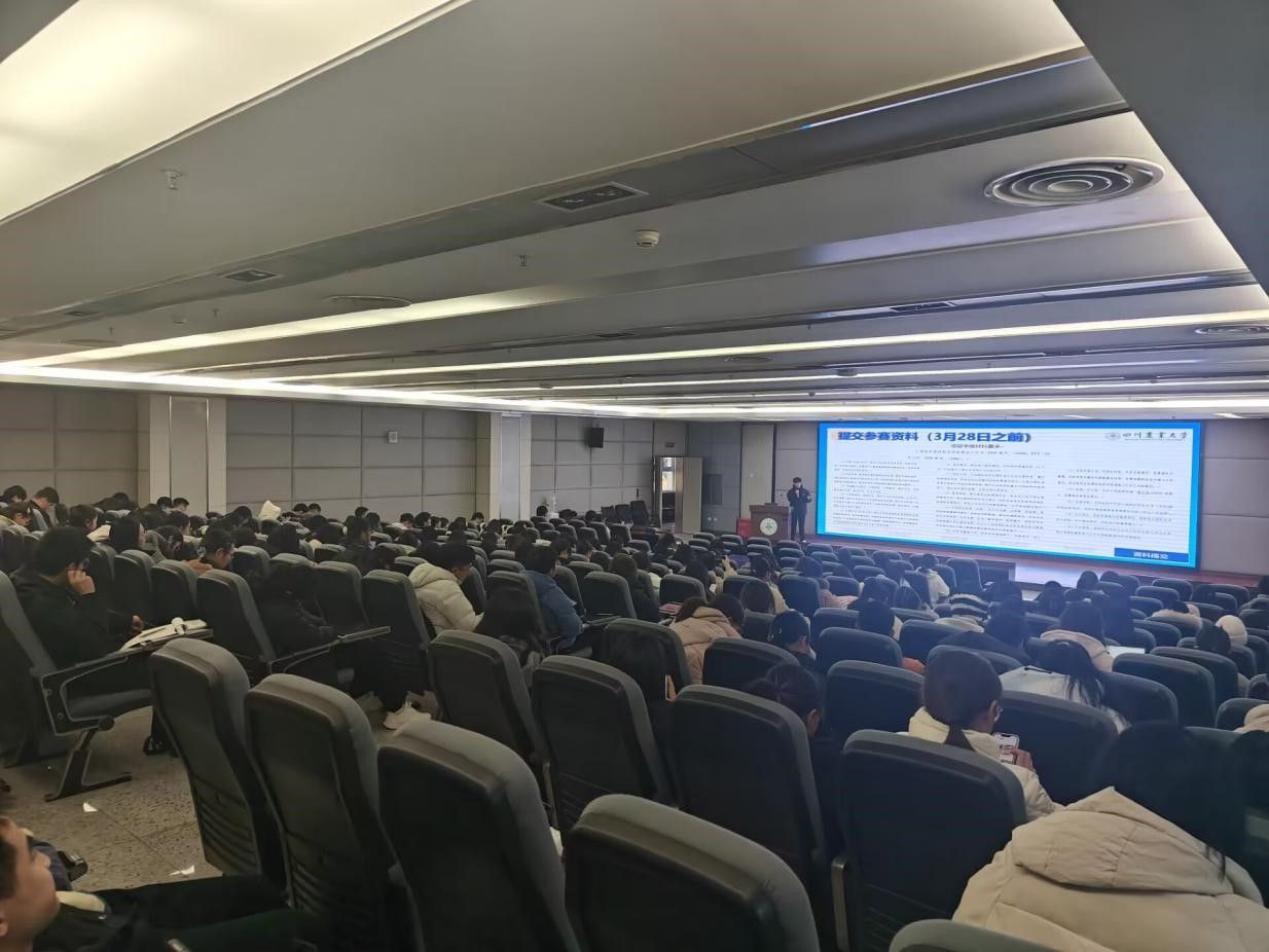 12月10日,bat365官方网站学生会主办,学风建设部承办的“与优秀同行”系列活动二——中国国际大学生创新大赛国家级金奖获得者分享会在校图书馆二楼报告厅成功举办。本次活动由学生庄镇宇主持,西南大学2021级本科生、国金项目负责人胡惠铭担任主讲嘉宾,并与项目主研同学刘芊与bat365官方网站师生分享创新经历与比赛心得。
