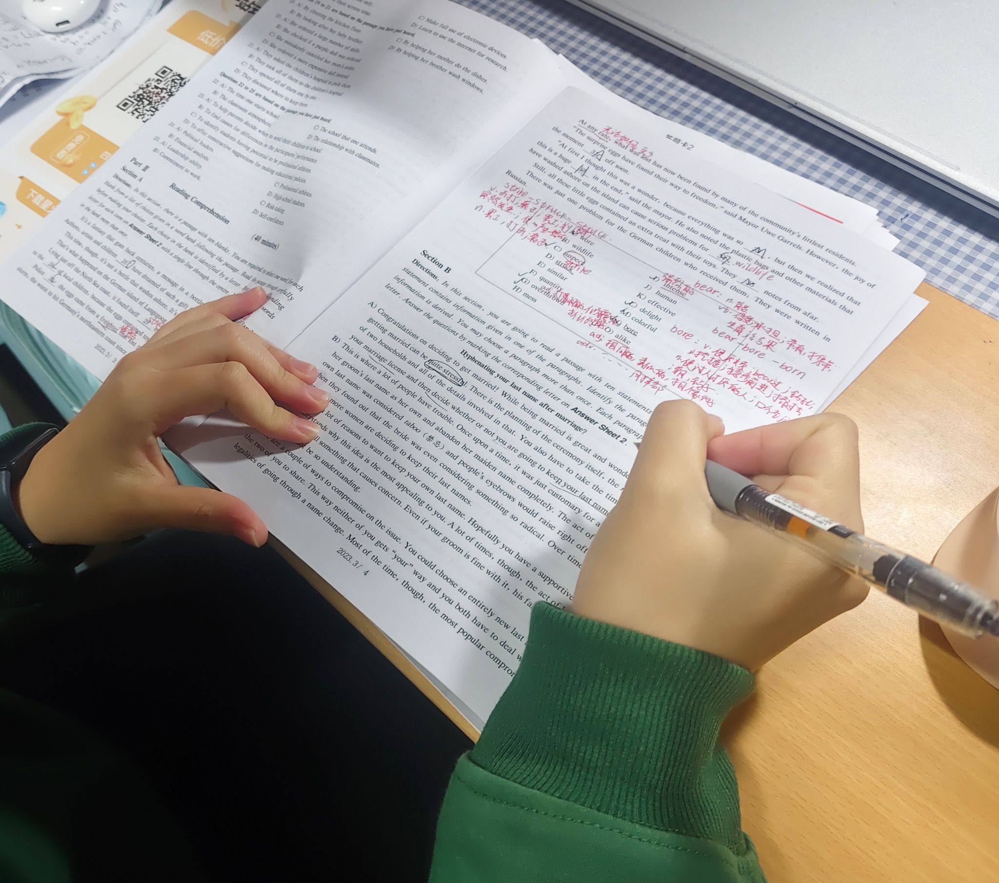 本次打卡要求参与同学每天完成至少两篇四六级阅读理解并批改、订正。在活动过程中,同学们每天合理安排时间进行阅读训练,将在阅读中遇到的生词、难句和语法知识在作业本上进行总结,并拍照记录,等待后续收集材料时提交。