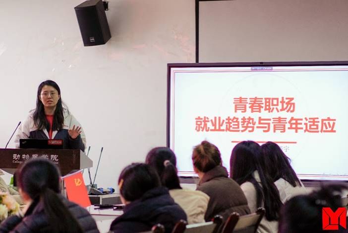苗宇则以“青春职场——就业趋势与青年适应”为主题发言。她重点关注了接下来的五四团委评优及毕业季就业工作,并就简历撰写与面试技巧展开详细讲解。苗宇指出简历制作常陷入不重视、不专业等误区,强调人岗匹配原则,运用KST评价模型总结个人亮点,通过USP建构四法则针对性撰写简历。除此之外,她还介绍了PREP结构化表达,助力学生干部在组织活动及与班委沟通时更具逻辑性。