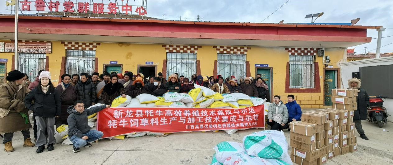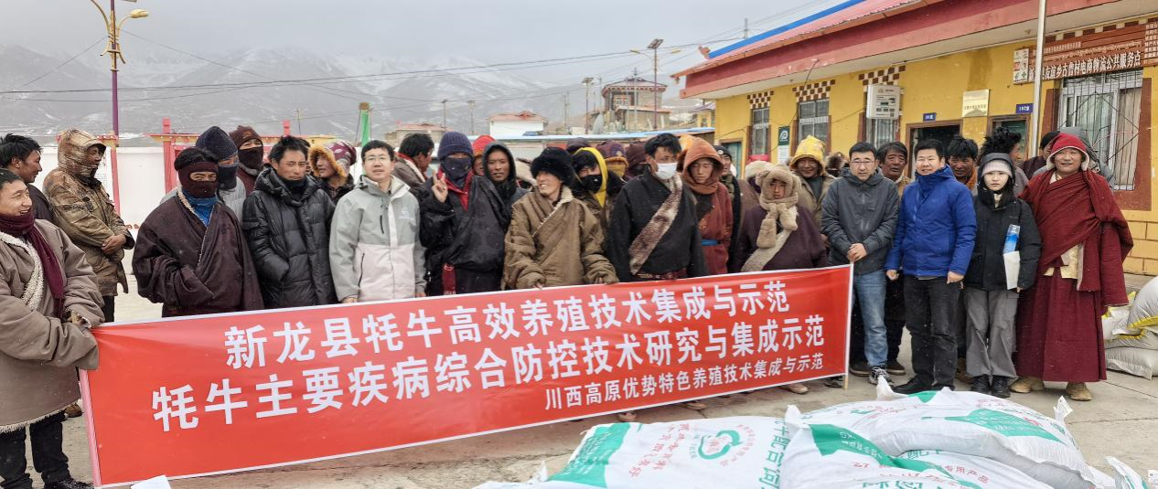3月6-7日,左之才教授一行先后前往海拔4300米的新龙县友谊乡,开展牦牛养殖技术培训和冬季牦牛养殖技术指导工作,并根据当地牦牛养殖问题送去了舔砖、牦牛精补料、饲用燕麦种子、有机肥料等。在此次帮扶工作中,友谊乡党委副书记雪绕益珠、乡长洛绒降央以及村党委主任向专家团队汇报了冬季牦牛养殖过程中存在的一系列问题,指出牦牛冬季饲草不足、呼吸道疾病高发、疫苗供应不足养殖技术落后等问题。团队专家针对牦牛个体生长及配种问题、冬季呼吸道疾病的防控以及疫苗免疫等问题对养殖户进行草料管理的专项培训,同时为他们提供预防结节性皮肤疫苗等。