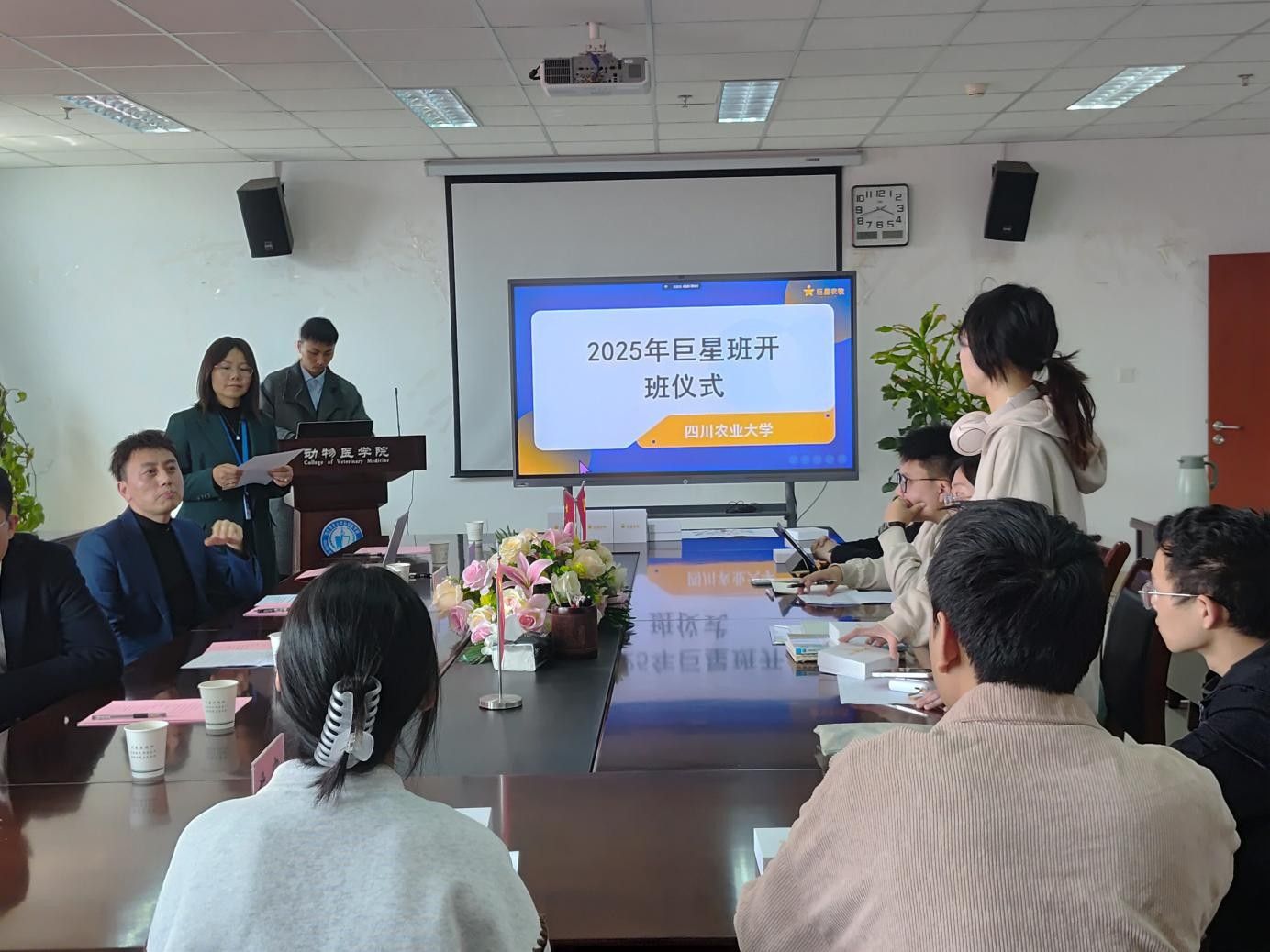 3月25日下午,bat365官方网站与巨星农牧集团在7教1109会议室隆重举行“巨星班”开班仪式,标志着校企合作迈入新阶段。bat365官方网站党委副书记宋三多、巨星农牧集团人力资源部部长刘泓晖等领导出席仪式,23名经过严格选拔的本硕学生成为首届“巨星班”学员。