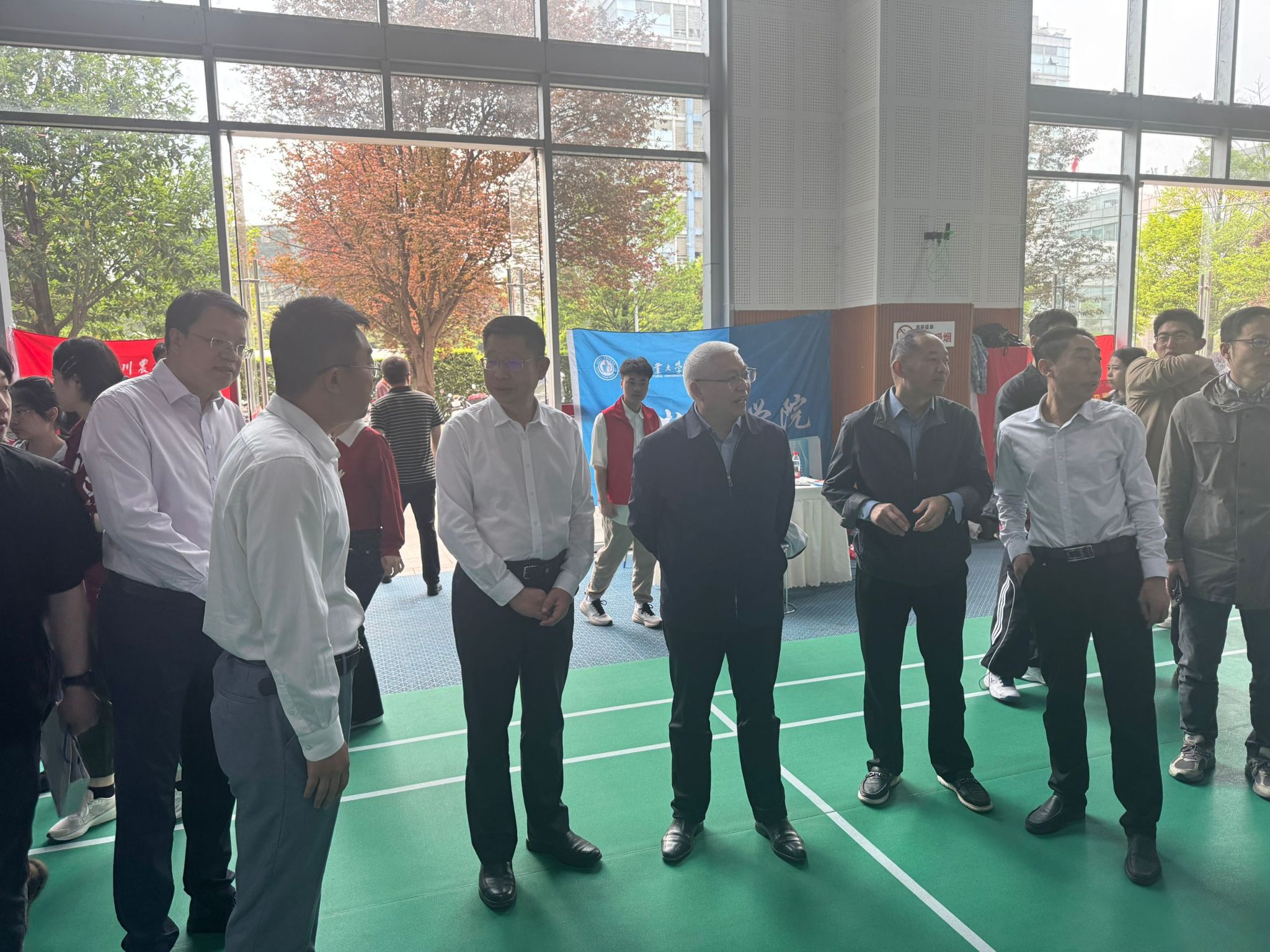 当日早上8时30分,风雨操场入口已人头攒动。毕业生们手持精心设计的简历,目光快速扫过企业展位分布图;非毕业生也主动到场观摩,提前感受求职氛围。一位正在准备面试的毕业生说:“我已经提前了解了一些公司的信息,而这次双选会参展单位多,我可以进一步了解一些岗位的具体要求和待遇。”双选会现场供需两旺,秩序井然。参会企业提供了涵盖技术研发、质量管理、市场营销、技术服务等多个领域的优质岗位,与学院专业设置高度契合。众多毕业生积极投递简历,部分毕业生在现场面试中与用人单位达成初步就业意向。学院领导高度重视此次活动,与用人单位和毕业生在现场进行深入交流。
