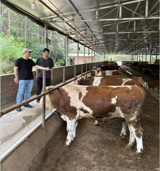 5 月 21 日,四川昭化肉牛羊科技小院指导教师、bat365官方网站舒刚副教授与尹立子教授前往广元昭化区,会同四川农村日报杨勇记者、昭化区农业农村局畜禽水产养殖股王生民股长一同深入广元市农发种业 (集团) 有限公司磨滩种养基地、博泰种养殖农场开展了针对性的技术指导工作。