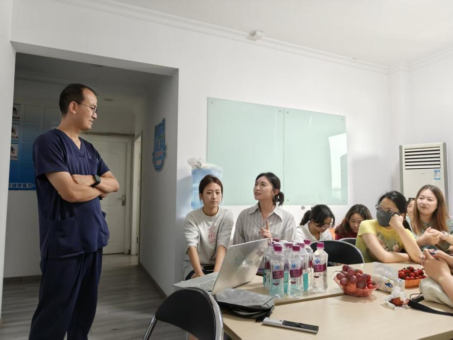 参观结束后,李先波院长与师生开展座谈会,围绕宠物医疗行业发展趋势、职业路径规划及兽医职业素养提升等议题展开深度交流。李先波院长结合行业数据与实践经验,全面解读了当前宠物医疗市场的发展现状——作为全国宠物医院数量第二的城市,成都已形成高度密集的行业布局,竞争格局的加剧正推动产业向“精细化、专科化”转型。他特别强调,面对行业“内卷”,要不断创新。比如最常见的宠物绝育手术,现在越来越多的医院采用内窥镜进行绝育手术,展示着行业竞争推动技术创新——这类微创手术的普及不仅提升了诊疗效率,更标志着宠物医疗从“功能性治疗”向“福利型照护”的进阶。