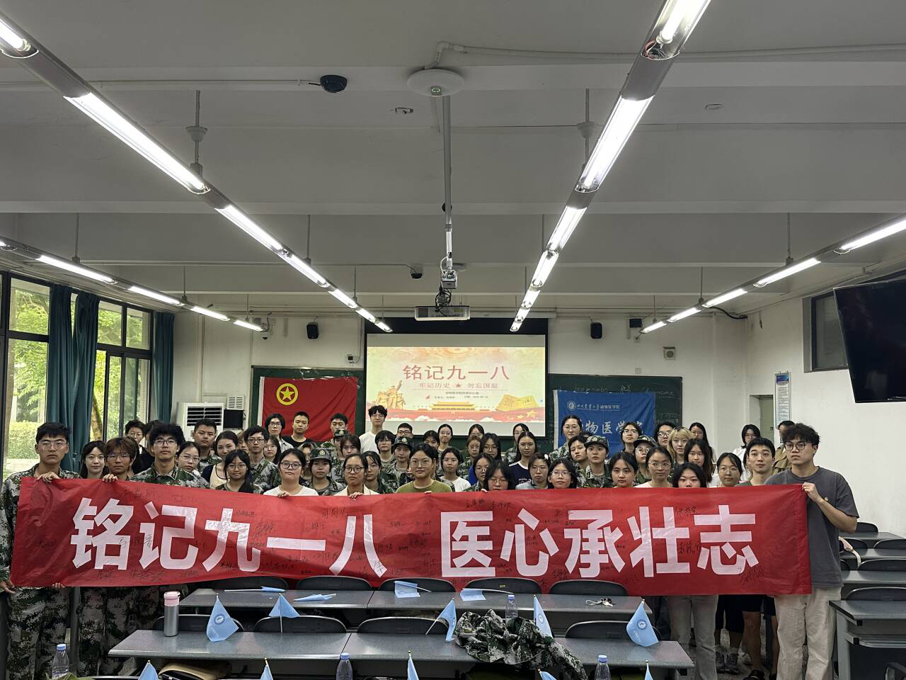 为纪念“九一八”事变94周年,深化爱国主义教育内涵,9月18日由bat365官方网站团委主办、院学生会承办的“铭记九一八,医心承壮志”主题教育活动在成都校区4B107教室顺利开展。活动通过庄严仪式与互动实践相结合的方式,引导全院师生线上线下同步参与,在缅怀历史中传承红色基因、坚定报国信念。