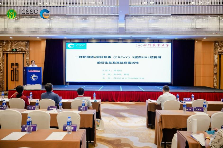 博士研究生梁易晓经大会遴选,在疾病防控与实践专场做了题为“一种靶向猪δ冠状病毒(PDCoV)S 蛋白 HR1 结构域的衍生肽及其抗病毒活性”的口头报告,详细介绍了在新型猪冠状病毒融合肽的设计、体外广谱抗猪冠状病毒的效果及分子机制,并展示了该融合肽防治PDCoV感染仔猪的体内疗效,为开发新型抗猪冠状病毒药物提供了新的方向。