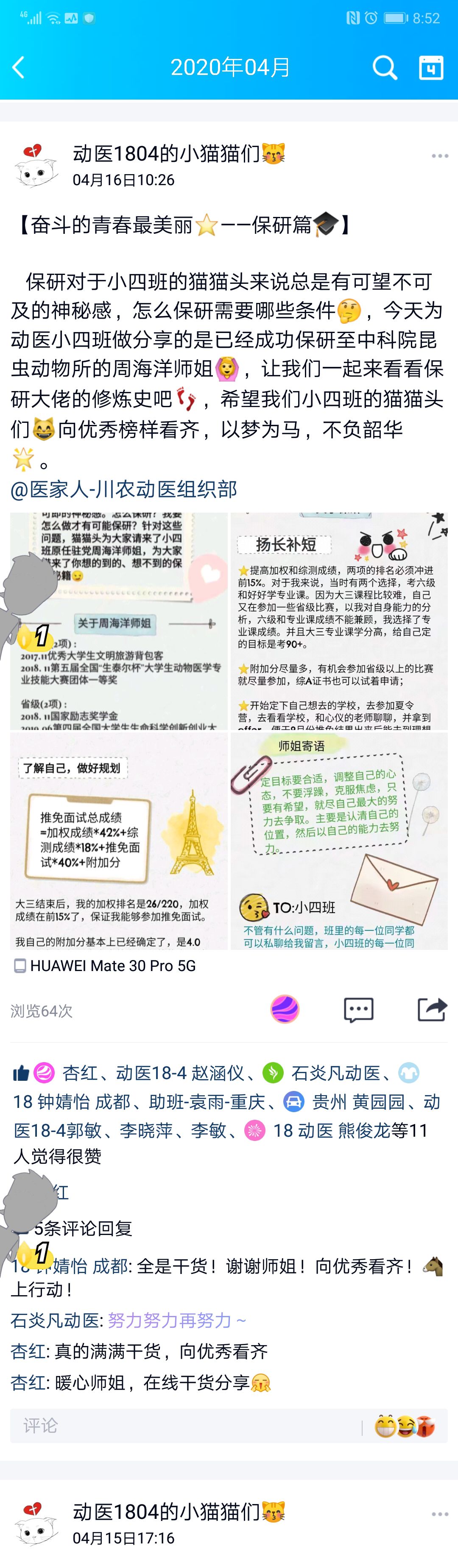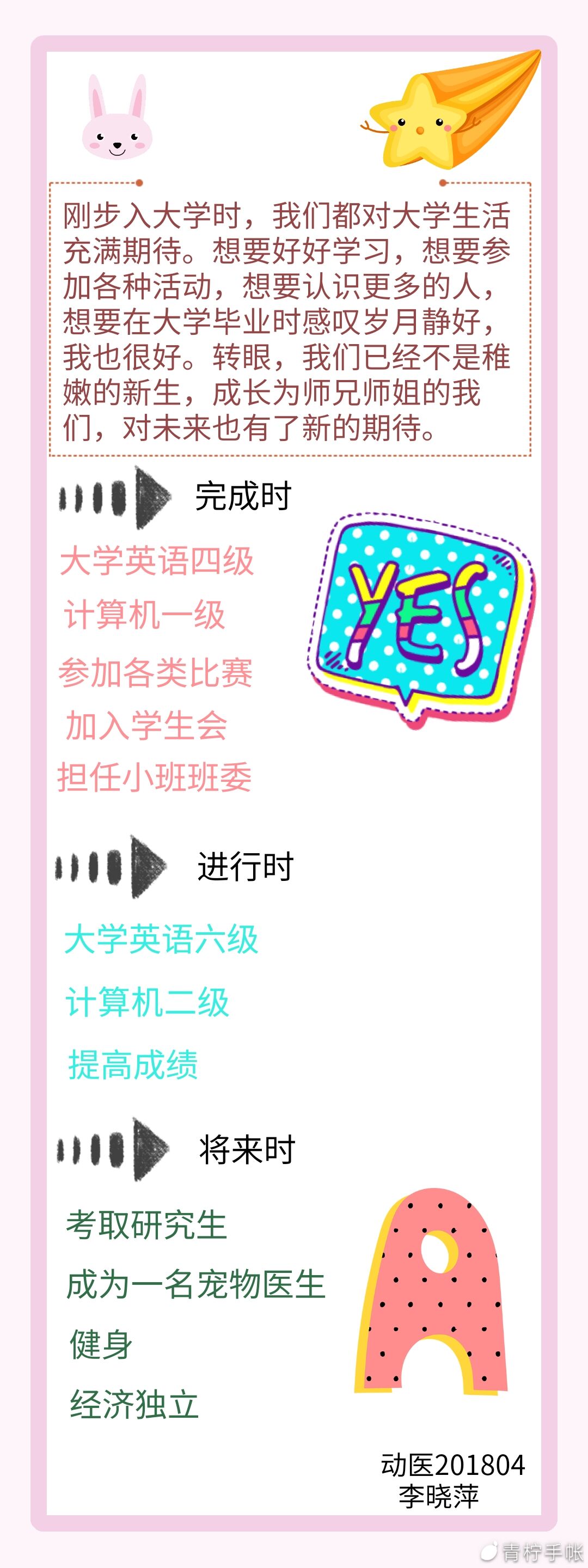 结合大一入学时写下的大学四年目标及规划,支部同学们不仅完成了很多还制定了新的目标,并且以手账、文档、手写等多种方式来呈现自己的进步以及未来的目标。在过去的一年时间,支部同学英语四级和计算机一级过级率达到双100%,班里95%的同学正在积极准备英语六级,85%的同学有考研的打算,35%的同学致力于科研工作,65%的同学梦想成为一名职业兽医……同学们表示,在今后的学习和生活中,当求真问学,知行合一,不辱时代使命,不负人民期望。