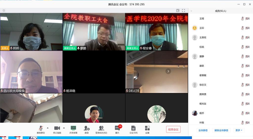 这是学院首次利用视频会议软件在线召开全体教职工视频会议,所有教职工们也积极踊跃地参加,提前半小时,除上课的老师外,其余老师就全部完成了在线打卡。会后,老师们都表示本次会议效果不错,虽然是线上,但是也以其特有的方式凝聚合力,真正实现了将会议开到线上,将工作干到一线。