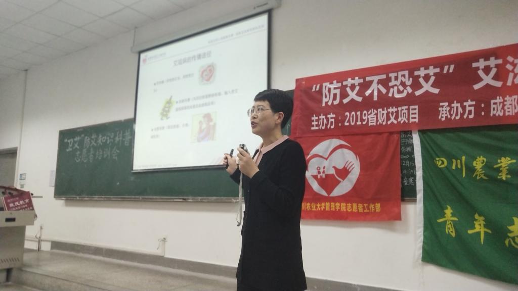 在防艾活动的整体推进中,志愿者们意识到,前期的系列活动虽然极大地调动了高校学生主动了解艾滋病知识的积极性,但知识科普的专业性仍不够到位。为此,动医青协邀请到了成都市恐艾干预中心的工作人员郭海燕,开展“卫艾”防艾知识科普志愿者培训会,进一步助推艾滋知识科普进校园,为此次防艾系列活动画上圆满句号。