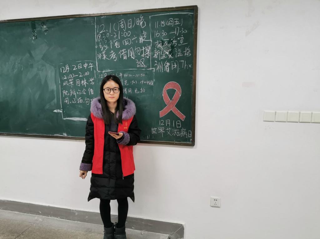 据悉,当日前夕,动医青协邀请到数名志愿者开展“黑板快闪”活动。“传播爱,拥抱‘艾’”、“12月1日世界艾滋病日”……写在飘扬的红丝带下的文字,是志愿者们对艾滋患者的默默声援。在世界艾滋病日的到来之际,动医青协用这种独特的方式将对艾滋病患者的关心传播到学校各个角落。
