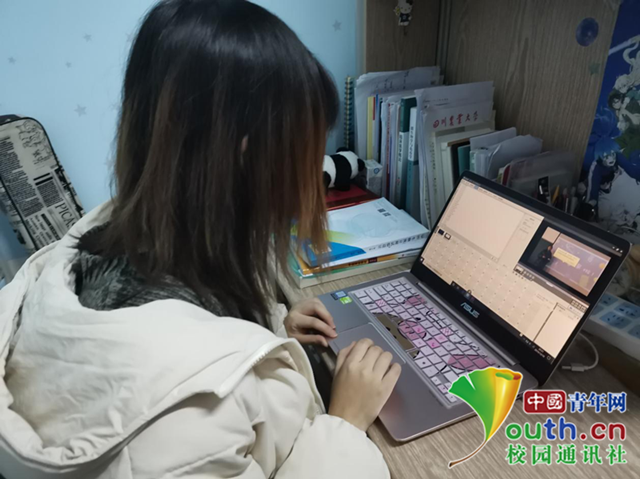 图为志愿者剪辑视频。中国青年网通讯员 杨丹 摄