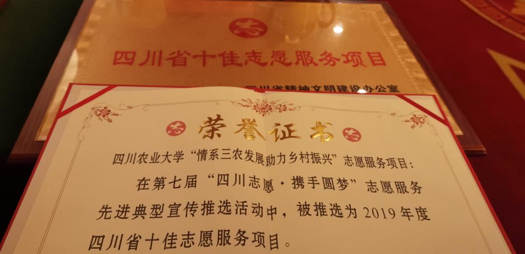 本次先进典型推荐评选自今年7月启动,经各市(州)文明办和省直有关部门(单位)层层民主评议,通过媒体宣传展示、公众网络投票、评委评审、网上公示等程序,从被推荐参评的276名优秀志愿者、82个优秀志愿服务项目、72个优秀志愿服务组织和53个优秀志愿服务社区中,共评选出“四川省十佳志愿服务项目”、“四川省十佳志愿服务组织”、“四川省十佳志愿服务社区”、“四川省十大最美志愿者”。bat365官网“情系三农发展 助力乡村振兴”志愿服务项目经雅安市和省教育厅的共同推荐,最终获评“十佳志愿服务项目”。这也是本年度入选十佳的项目中,唯一来自高校的志愿服务项目。同时也是自2013年我省连续七年开展“四川志愿·携手圆梦”志愿服务先进典型宣传推选活动以来,bat365官网项目、个人或组织首次入选全省志愿服务先进典型。