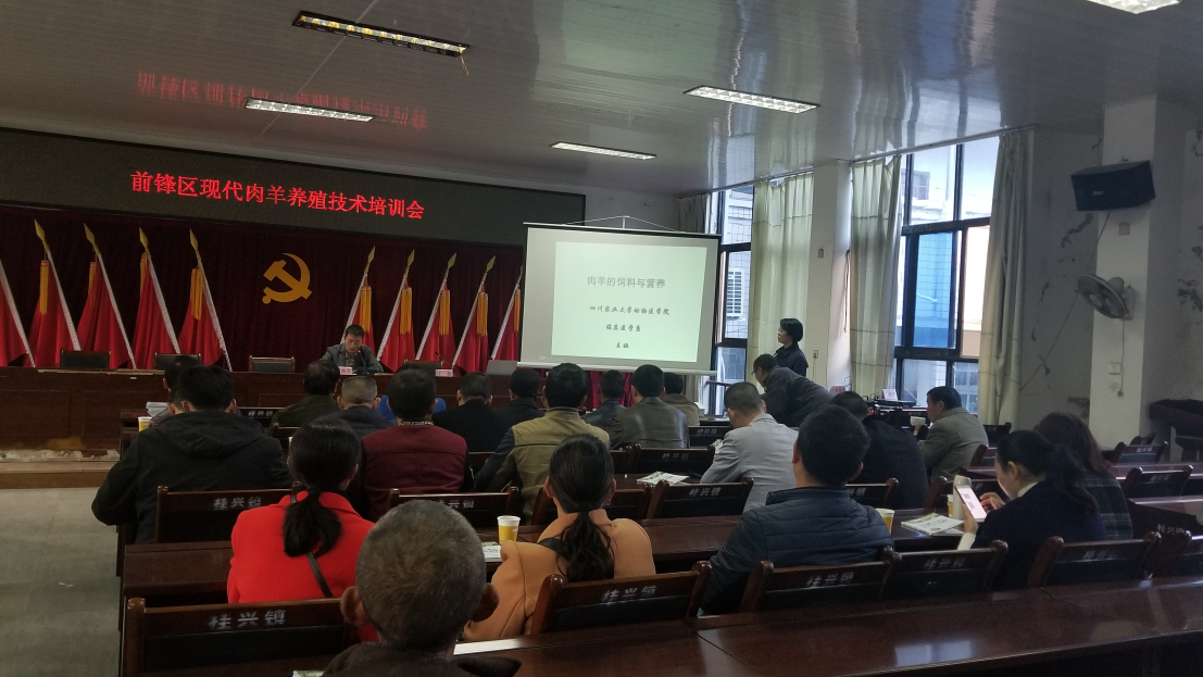 在广安前锋区,3位专家针对当地养良种羊易生病、本地羊不易生病但生长慢、饲喂玉米面发生瘤胃胀气及怎样驱虫、冬季羊的饲草饲料缺乏、当地焚烧玉米秆带来的污染等问题,为畜牧管理人员、基层畜牧兽医技术人员、贫困户、大型养牛养羊户、养牛羊企业管理人员、技术人员分别作题为“羊病综合防治技术”和“羊的饲料加工与养羊技术”的培训。这是动医专家在今年9月底深入村镇调研,了解到当地缺乏养羊技术,对羊病防控缺乏深刻认识而举办,并专门为养殖户赠送了《山羊标准化规模养殖图册》。
