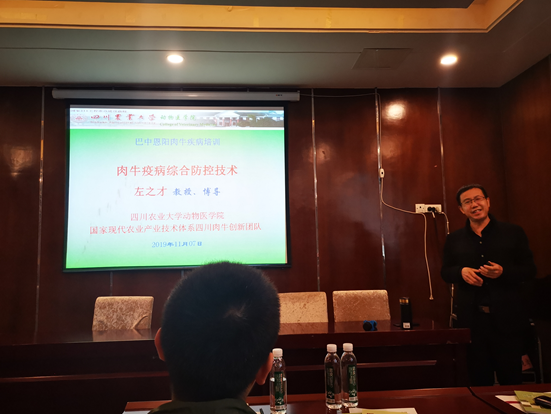 11月5-12日,四川肉牛创新团队疾病防控岗位专家、bat365官方网站左之才教授,临床系邓俊良教授、王娅副教授带领部分学生先后赴秦巴山区广元市旺苍、巴中恩阳,广安市广安区、前锋区等地开展肉牛疫病综合防控和肉羊养殖技术培训。
