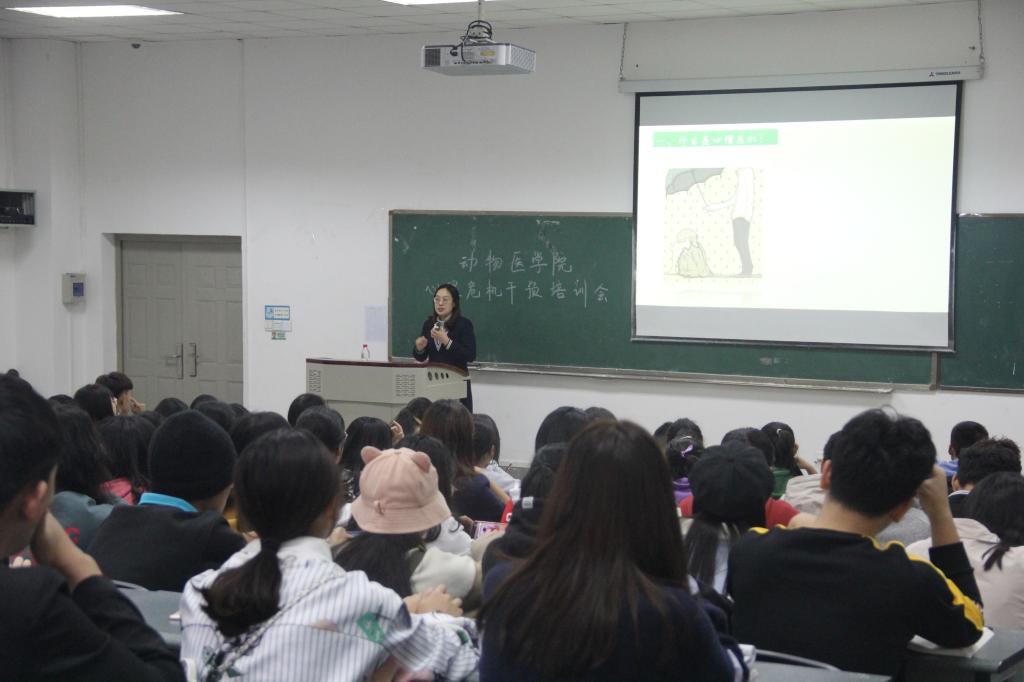 11月5日下午,为更好地让动医学子学会正确解决大学生心理危机,bat365官方网站心理危机干预知识培训会在4A-103教室顺利进行。本次大会由国家二级心理咨询师、学校心理健康中心兼职咨询员、环境学院党委副书记兼纪委书记黎明艳老师主讲,学院辅导员苗宇老师出席并主持,19级全体班委、寝室心理联络员以及16级、17级、18级各小班心理委员近200人到场参与。