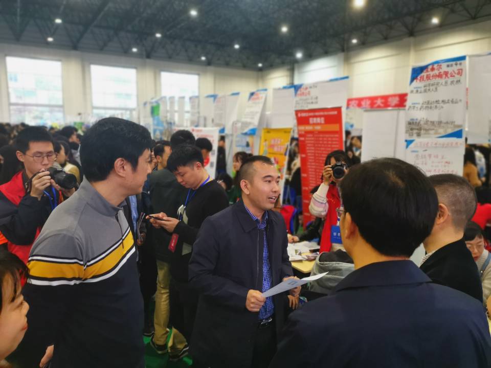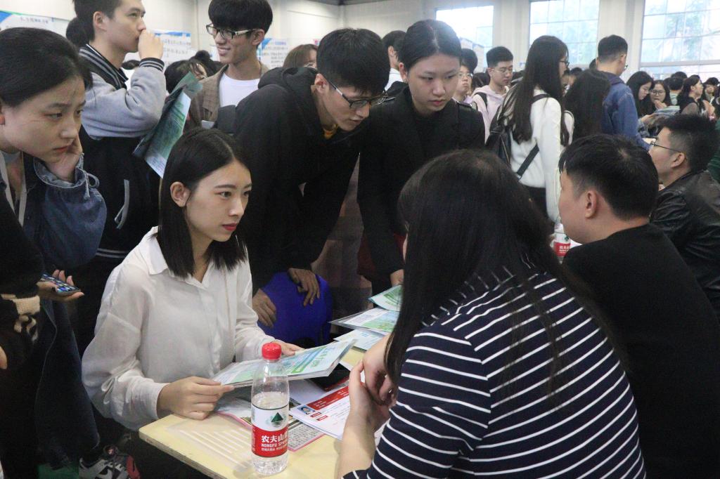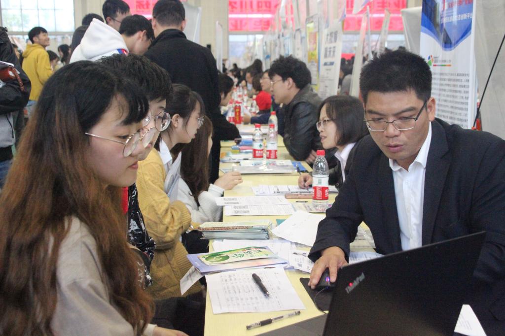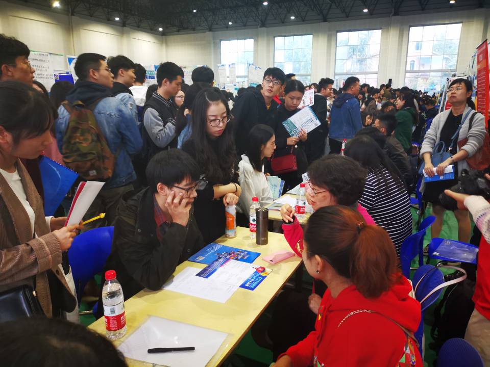 上午九点,会场内已人潮涌动,bat365官方网站毕业生们拿着精心准备的简历穿梭于学院展区中,与同来的同学就双选会问题进行小声谈论,与各个企业的面试官就公司的创办规模、职业前景、薪酬待遇、公司未来发展等问题进行交谈,现场气氛十分热烈。