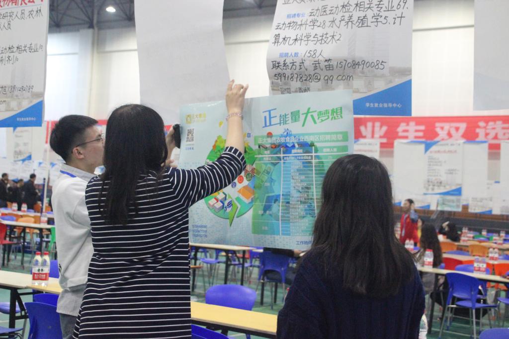 在面试过程中,毕业生和企业进行双向选择,共同寻找双方的最佳契合点。值得一提的是,如今的不少毕业生在选择企业时,不再把薪酬待遇视为重中之重,而更注重企业的发展前景和职业契合度。一位动医大四学生在接受记者采访时说道:“在薪酬待遇和公司发展前景之间,我更看重后者。”更有一些毕业生,对于未来发展有着十分清晰的定位,对自己心仪的公司已提前做好了解,在面试时展现出动医学子积极自信的良好风貌。